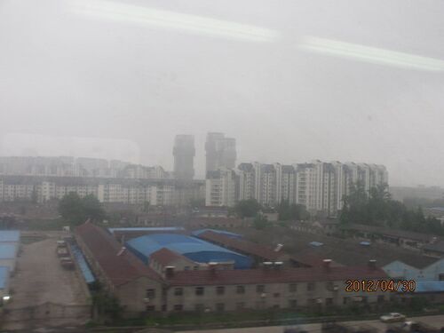 夜が開け、窓の外には大都市の郊外の様相が見えてきた。 今、大きな鉄橋を渡っている。 ああ、これは黄河だ! 鉄橋が随分高い位置にある。 黄河を渡るともう南京市内。 空気汚染か、街が良く見えない。 夜行列車と言っても寝台車ではなく、座席に座ったまま…