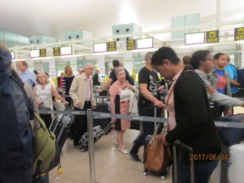 6月3日11時、スペイン・バルセロナ空港に到着した。 広さ、その他、他の空港と変わらない。 ランプウエイを走行し、搭乗ブリッジへ。ブリッジからの撮影。 乗客の後をついてバゲージクレームへ。 乗客は観光客のようなラフな人が多い。 飛行機はバルセロナの…