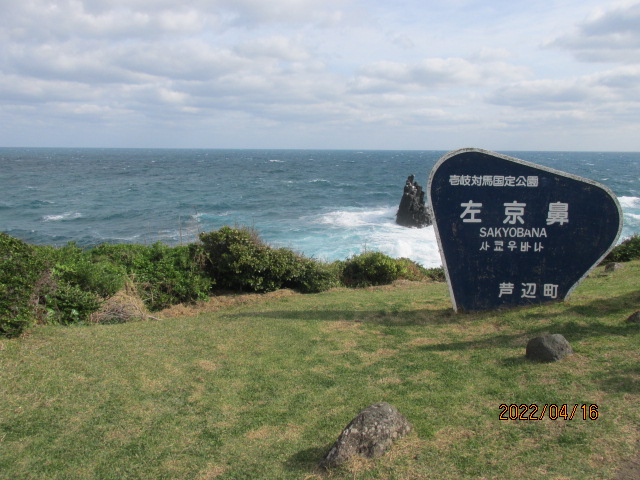 楕円形に近い島の北西端から左京鼻のある東北端まで島を横断するのに20分もかからない。一度島を南北に縦断している唯一の国道を横断する。その前に鬱蒼とした林の中にある産土神社、月読神社の前を通過する。司馬の本の中にも書いてあったが、この島は神社が多い。農耕と神社。農耕により生活に余裕ができ、富の集積も出来、豊作に感謝する気持ちも芽生えてきた。それ以前にこの島と北隣の対馬は大陸の宗教的習俗を最初に取り入れきた島だ。月読命。天照大神の弟で、須佐之男命の兄君だ。この月読命は京都の松尾大社にも祀られている。そんな説明を受けている内に、バスは目的の左京鼻に到着した。