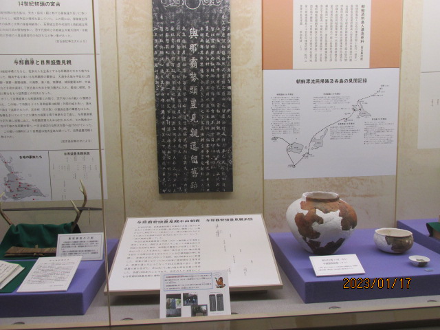 この大きな掛け軸は誰がどのような経緯で中国清王朝の康熙帝か雍正帝から贈られたものなのか。琉球王朝は中国の冊封を受けていて、大陸と活発に交易していた。以前寧波を旅行した折には琉球国の領事館跡も見てきた。この宮古の王政も琉球国の陰に隠れ、或いは従うように清国との交易をおこなっていたのか・・。或いは又、那覇の王朝が清国王から贈られたものを、ここ宮古王に下賜したのだろうか・・。一幅の掛け軸に様々な想像が浮かんでくる。でもまあ、学者でも無いものがあれやこれや詮索しても始らない。これ以外にも多種多様な骨董品、遺物、調度品などが展示されている。それぞれ、興味深いものだ。宝貝が殆ど見られなかったのは、琉球王国が成立した時点で、この列島は早くも貨幣経済に組み込まれたからだろう。