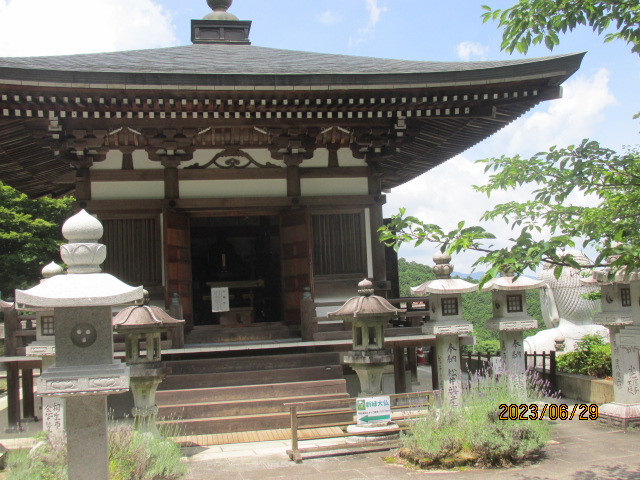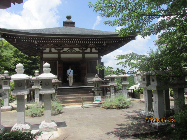 その点、一人での巡礼だと自分の足と相談し、他の団体さんに急かされることも無く、自分のペースで回ることができるので気は楽だ。目に付いた建物にカメラを向け、遠くから参拝し、ゆっくりと足を運ぶ。宝篋とか多宝塔、目のお寺だけあって慈眼堂などもある。そうした建物を見たり、両手を合わせたりするだけでも、ちょっとした立ち休みにはなる。しかも下り勾配だから歩くのも楽だ。